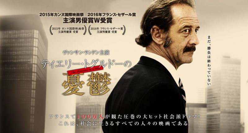 リストラで1年半も失業中の中年男ティエリー。やっとの思いでスーパーの監視員の仕事を手に入れる。これで家族を養いローンも返済できると思った矢先、職場で残酷な現実に直面して…。2015年のカンヌ国際映画祭でヴァンサン・ランドンが見事に主演男優賞を受賞。シリアスな社会問題を描いているにもかかわらず、フランス本国で100万人を動員する快挙となった。(公式サイト)