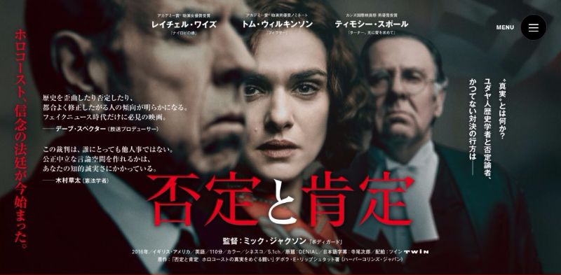 ウィキペディアによれば、「イギリス人作家デイヴィッド・アーヴィングがアメリカ人作家デボラ・リップシュタットと出版社ペンギンブックスを訴えたイギリスの裁判。アーヴィングは、リップシュタットが著書の中で彼をホロコースト否認論者と呼び中傷していると主張した。」ということで、映画は、その法廷闘争をリップシュタットとその弁護団の視点で描いています。