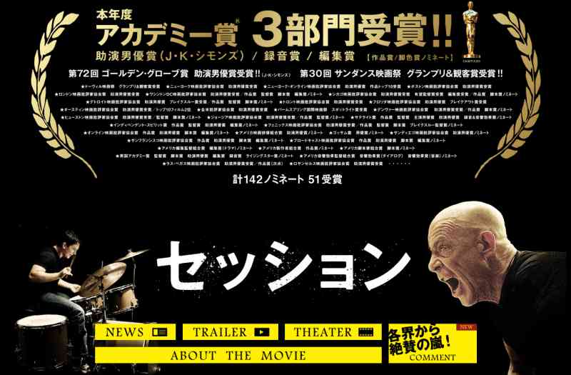 原題は「Whiplash」という曲名で「セッション」ではないのですが、ラストの演奏にニーマンとフレッチャーのセッションがあったとは思えませんし、いずれにしても「セッション」って喧嘩じゃないでしょう。
