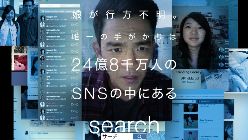 Facebook、Instagram、Tumblr、Youtube、Twitter、Messenger、skype、ネット中継などなど、聞いたことのないアプリも出てきましたので、あるいは創作のものもあるかもしれませんが、それらを駆使して見事に謎解きミステリー映画に作り上げています。